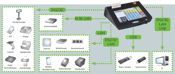 - integrierter Thermobondrucker, 80 mm Bonbreite